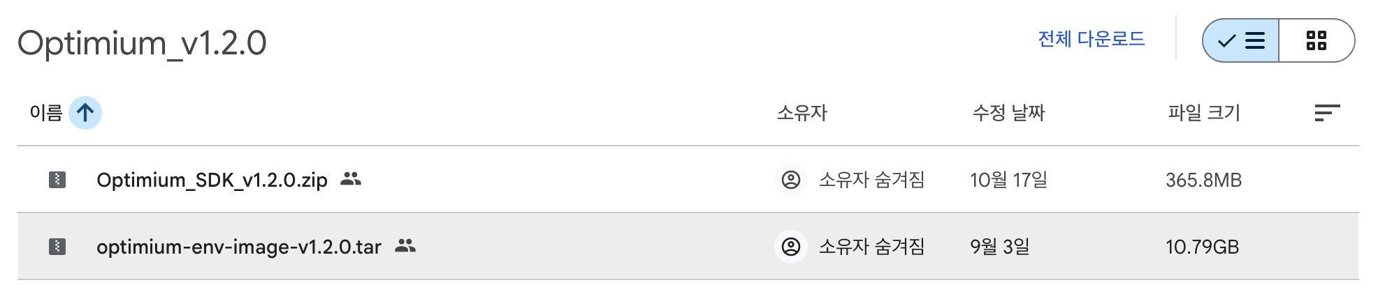 Download Optimium_SDK_v1.2.0.zip from Google Drive. Use unzip command or file explorer to extract files from zip file.